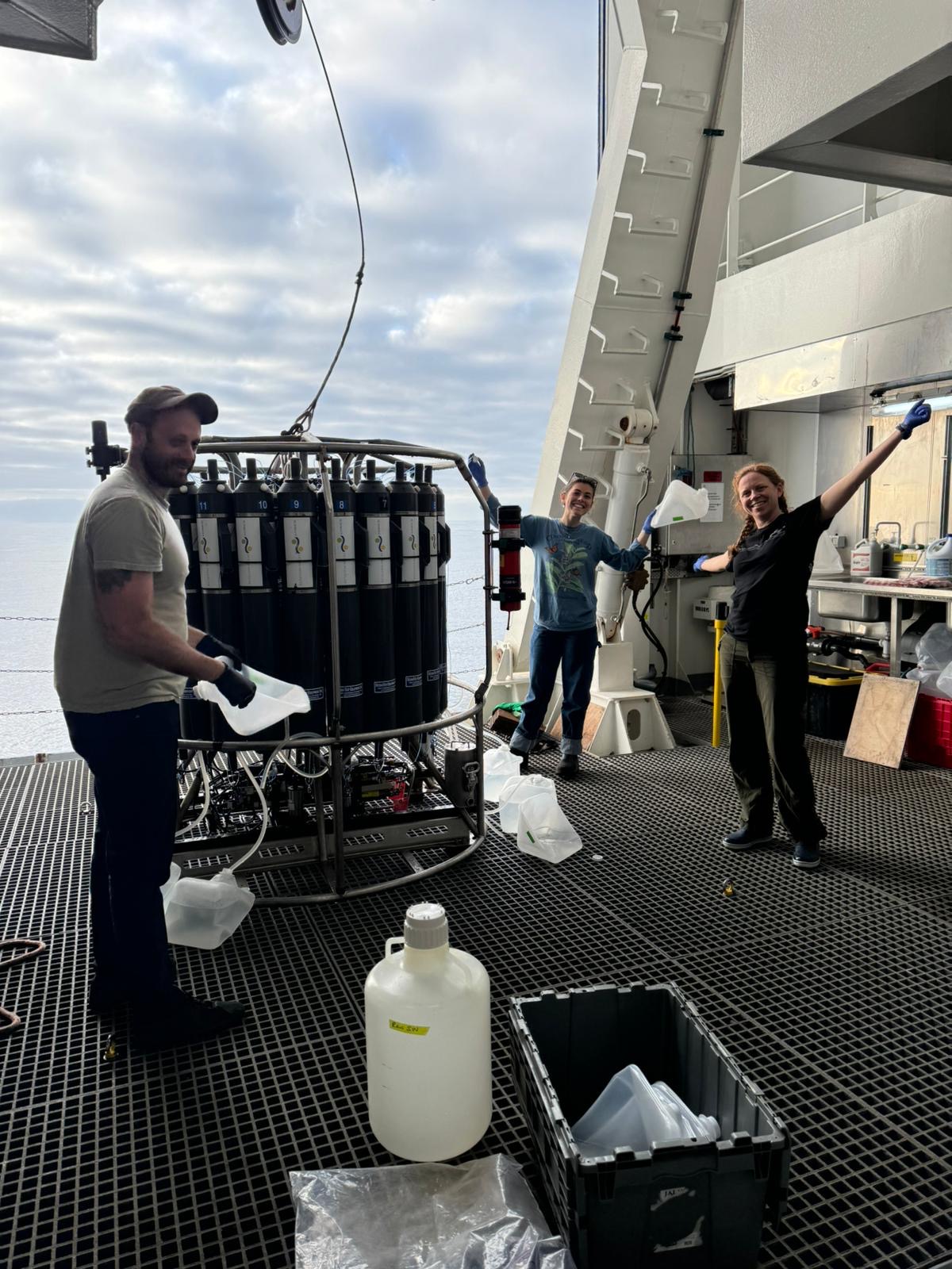 The first OMZ expedition took place in 2023 aboard the R/V Atlantis, departing out of Puntarenas, Costa Rica, and visiting the Eastern Tropical North Pacific Oxygen Minimum Zone off of the western coast of Mexico. Brown conducted virus sample collection in order to enhance sampling efforts of collaborator and chief scientist Maria Pachiadaki. Brown documented her travels to the ETNP in several 2023 blog posts , and her time at sea was featered in Bigelow’s Transect Magazine .